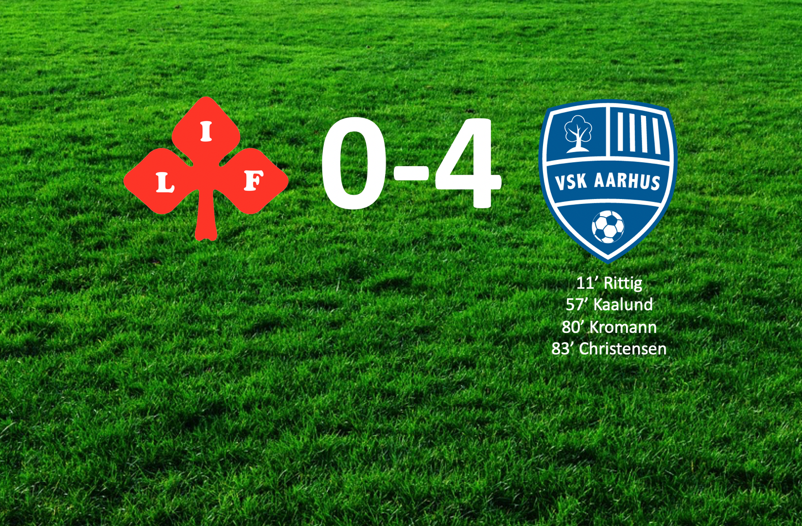 Jakob Hansen Niklassen fandt på en dyb bold Mads Kaalund, der gjorde det til 2-0 kort inde i anden halvleg. 3-0 blev det ved Jacob Kromann inden, at Nicolai Christensen lukkede til 4-0 på et straffespark.
