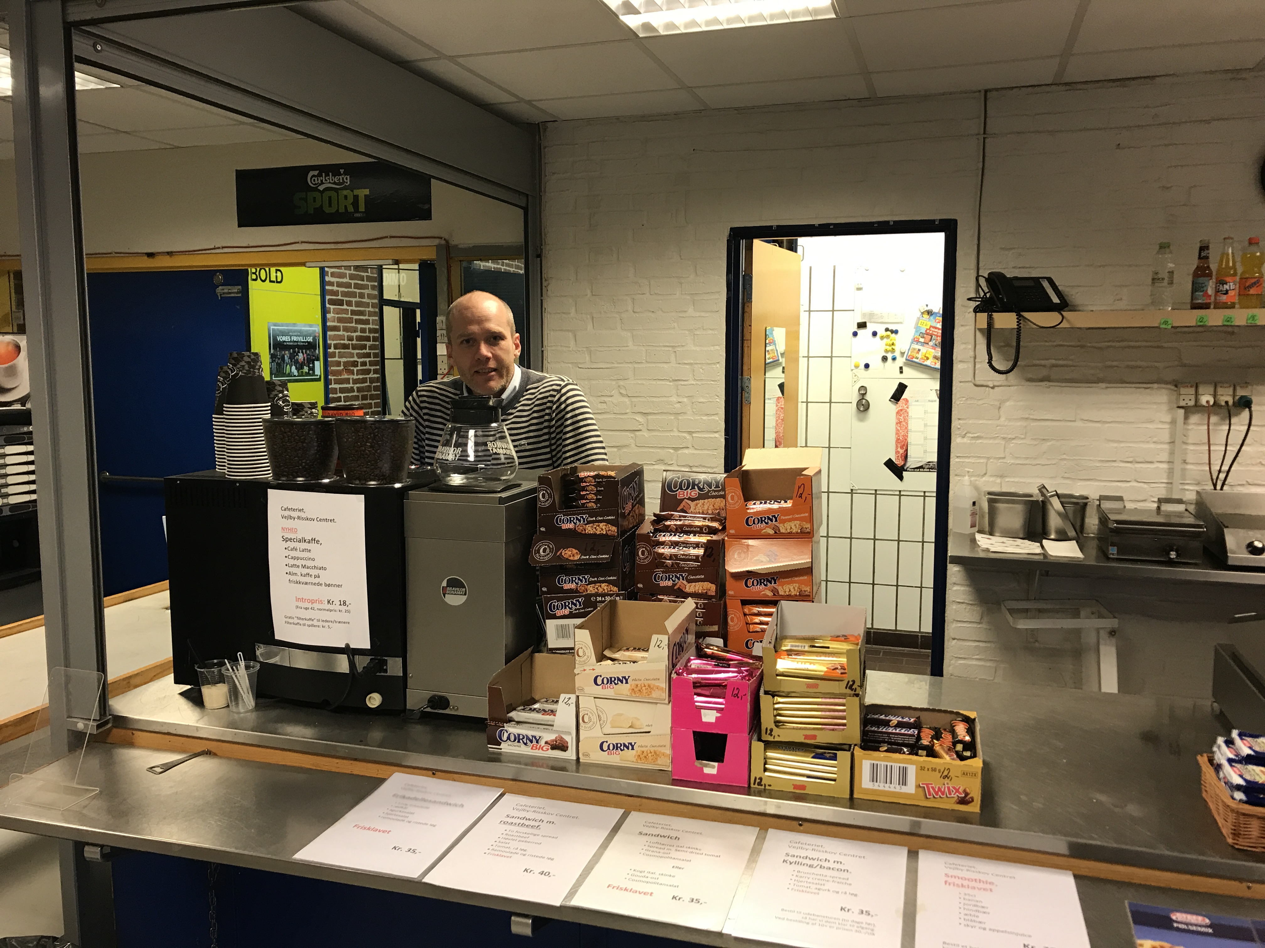 Jeg var i lang tid i nøje overvejelser omkring en overtagelse af forpagtningen. Jeg mente at kunne se et stort potentiale på baggrund af de mange mennesker, der dagligt har deres gang på Vejlby Risskov Centret. Med de mange mennesker, bør jeg med det rette sortiment og de rette priser være i stand til at få en procentdel af disse mennesker ind og købe en sodavand, en kaffe eller dagens ret. Så da jeg havde gået med overvejelser i 3 måneders tid og blev afkrævet et svar, besluttede jeg mig for at give det en chance, fortæller Morten Bjerre Justesen